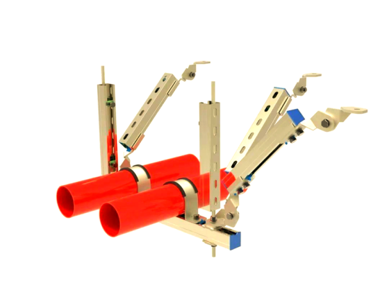 抗震支架作为建筑机电工程的核心抗震构件,其安装质量直接关系到地震时管道、风管、电缆桥架等设备的稳定性。根据《建筑机电工程抗震设计规范》(GB 50981)及工程实践,抗震支架安装需从方案设计、材料选择、施工工艺到验收维护全流程把控,以下为关键注意事项:一、方案设计:精准定位与科学计算深化设计先行抗震支架需由专业厂家根据建筑结构图纸、机电管线综合排布图进行深化设计,明确支架类型(侧向/纵向/门型)、间距及荷载参数。例如,DN65以上给水管、直径≥0.7m的风管系统必须设置抗震支架,且水平管道90°转弯处需增设节点。动